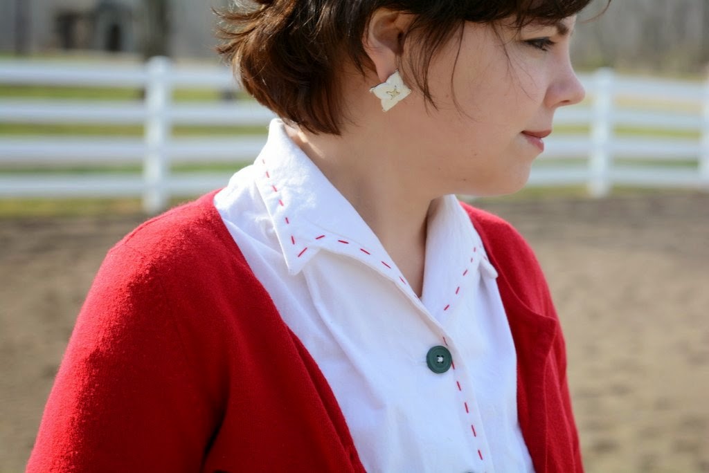 To finish the outfit, I added a maroon cardigan, pearls and my newest pair of Sparkle Lux earrings in green! And cat eye sunglasses, of course!