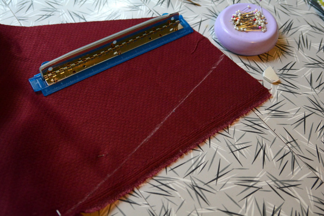 The ribbon was applied by hand after the main construction of the pocket was complete. It wasn’t until after I’d sewn and pressed my pocket that I bothered to look at my old pocket to see how I’d made that one. Last go around, I was smart and applied the trim before construction so the raw edges were finished nicely inside the seams. Oops! So I had to fold under the ends of the ribbon at the seam. It doesn’t look as nice but I guess that’s what I get for not paying enough attention!