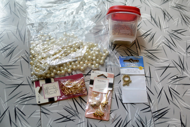 That left me with just accessories to finish. I really wanted to take a stab at making my own jewelry. I’d never made jewelry before but Italians sure have some great jewelry! I had a bunch of faux pearls in my stash so I decided to make pearl earrings and a necklace.