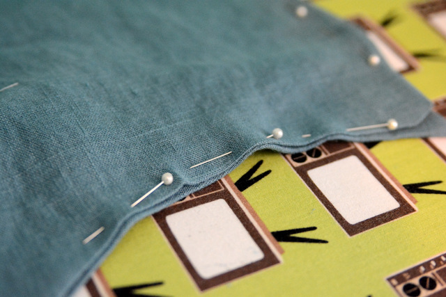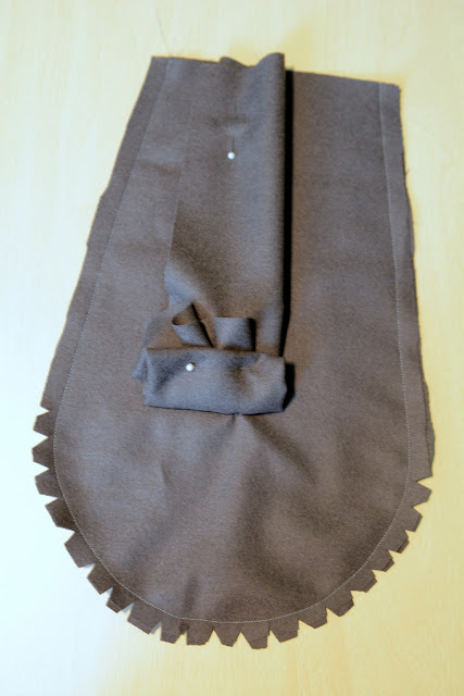 I've sewn up most of the pocket by machine but will be hand applying trim once I decide on which trim I like best. I always have such a hard time deciding on trim options! It's too hard for me to visualize the finished project.