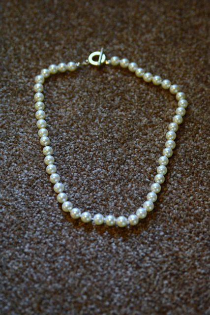 The pearl necklace is made from the same faux pearls and was hand knotted.