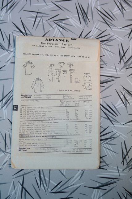 What a cute 1930s pattern! It has really cute fluttery sleeves and is perfect for some really special buttons. Note: This is an unprinted pattern. This pattern is also missing several pieces from the shorts pattern: L shorts underlap, M shorts overlap, P front shorts belt, R back shorts belt. All of the pieces for the blouse and skirt are included. This is reflected in the price.